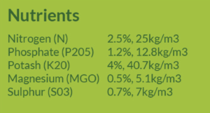 Gro is particularly rich in potash, which is vital to plants throughout their lifecycle. It is water soluble and easily absorbed by plants to help them flower and bear fruit. Potash also helps plants to use other nutrients better, and prevents nitrogen depletion. Gro contains the following natural nutrients: